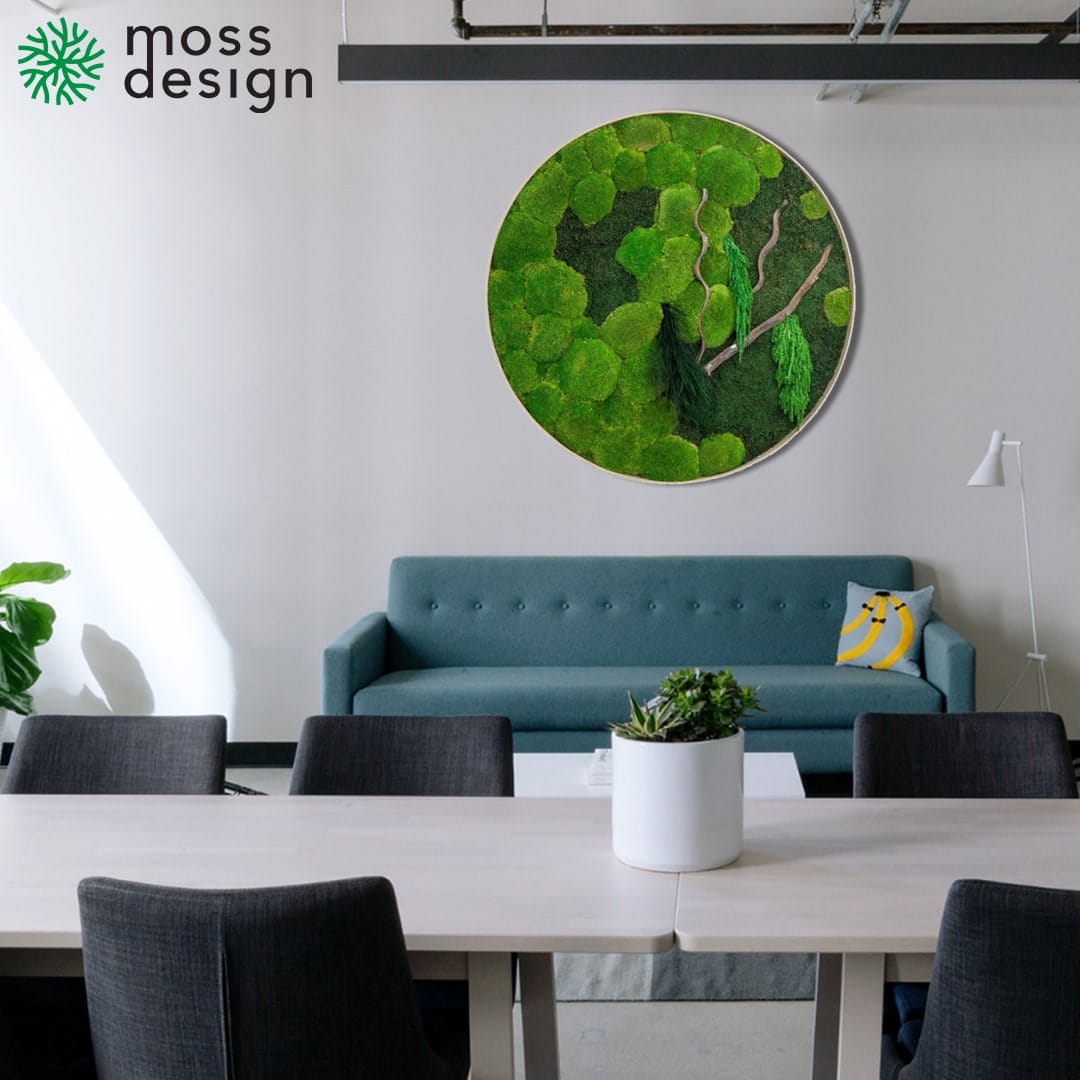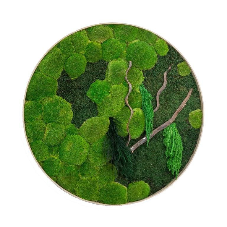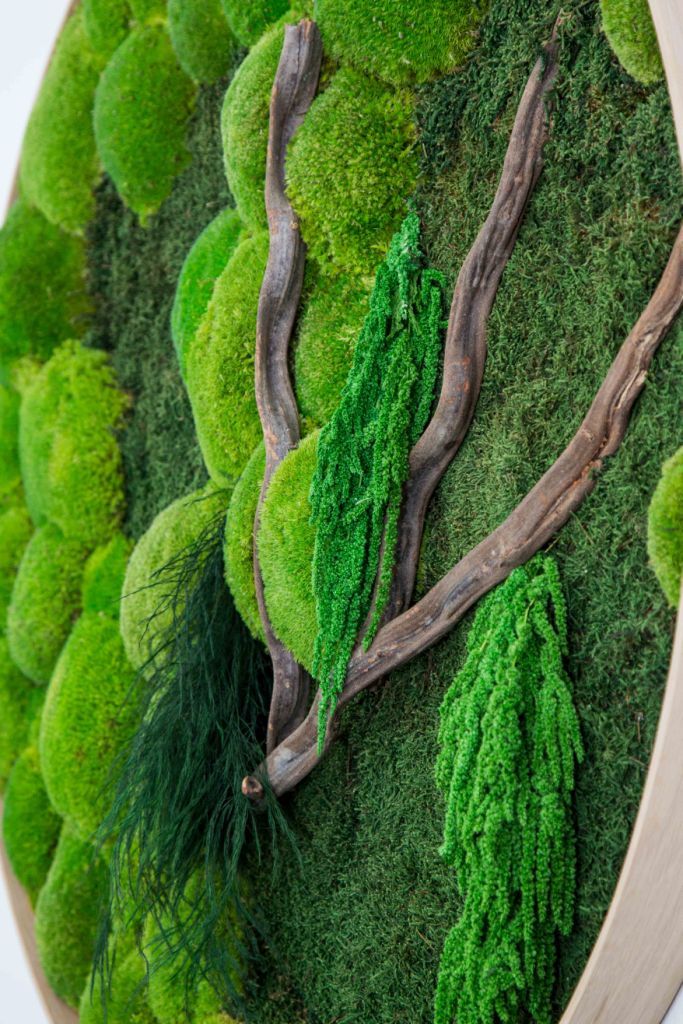 Mit seinem originellen Design bringt das runde Moosbild ESSENCE ein Stück Natur und Harmonie in Ihr Interieur, an dem wir uns nie satt sehen werden. Dank seiner schlichten Form und der ausgewogenen Komposition wird es jede leere Wand beleben und zu einem unverzichtbaren Teil Ihres Zuhauses werden.