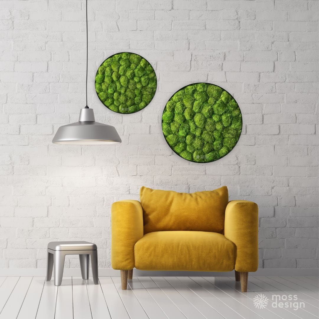 Kreisförmiges Moosbild – Sie werden das sibirische Moos dank seines 3D-Effekts und seiner einzigartigen Struktur lieben. Es wird Sie mit seinem natürlichen Aussehen anziehen und passt perfekt in jeden Raum, den Sie verschönern möchten.