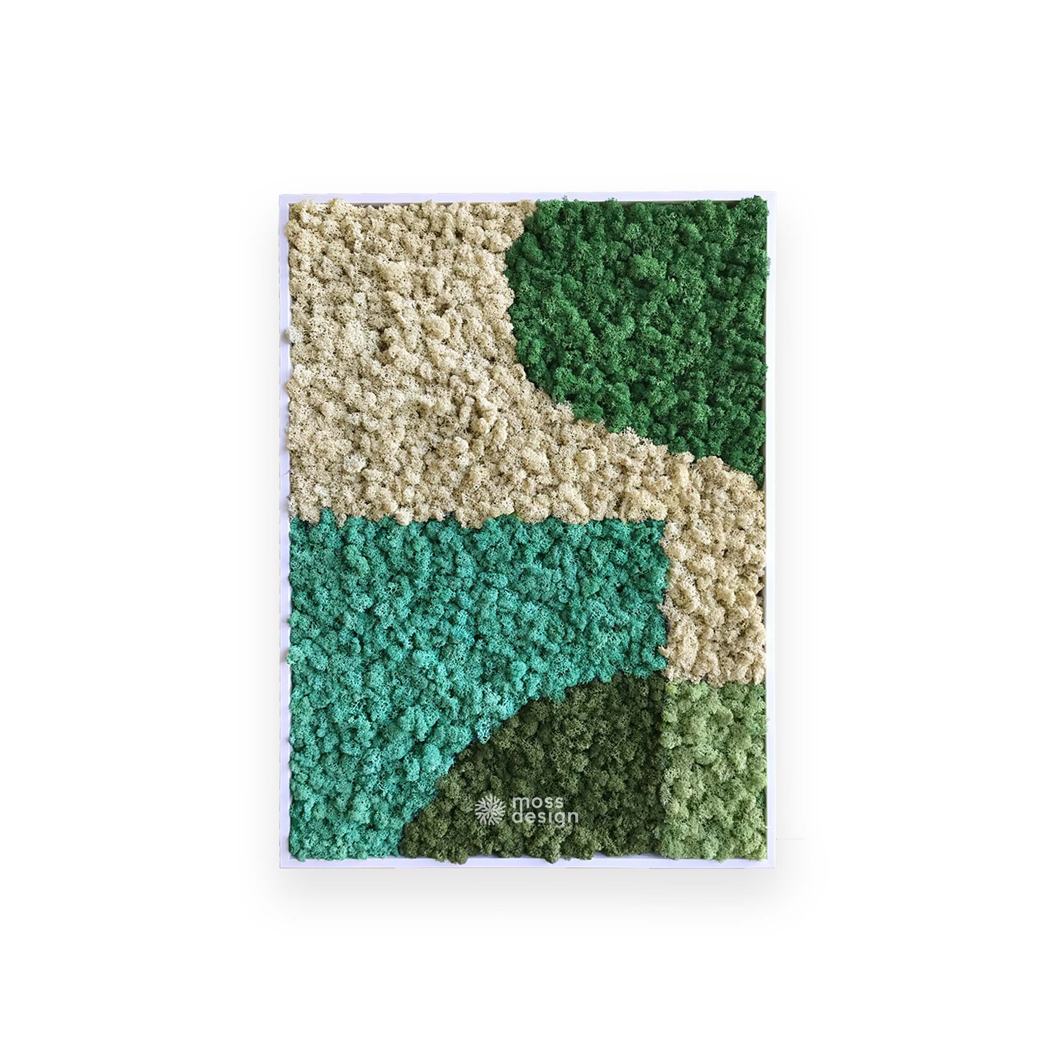 Das Design-Moosbild GEOMETRY GAMMA ist ein heißes neues Produkt in unserem Sortiment. Nordische Flechten in verschiedenen Farbtönen, die in unregelmäßigen geometrischen Formen angeordnet sind, bringen jede triste Wand zum Strahlen. Es kann mit anderen Moosbildern aus der GEOMETRY-Serie kombiniert werden –