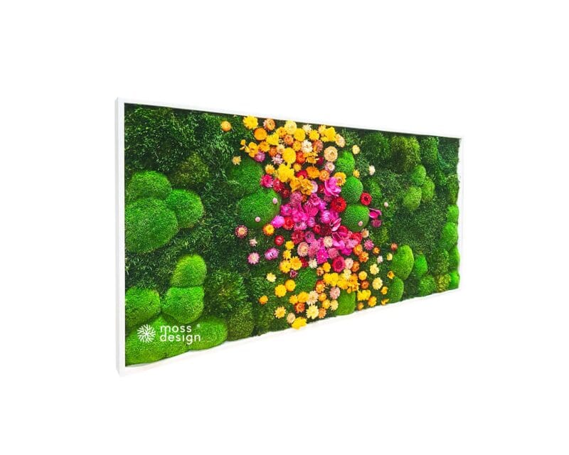 • Das sibirische Moos wird in einen hochwertigen, handgefertigten Eichenrahmen mit einer Höhe von 45mm – 60mm und einer Dicke von 4mm eingesetzt.