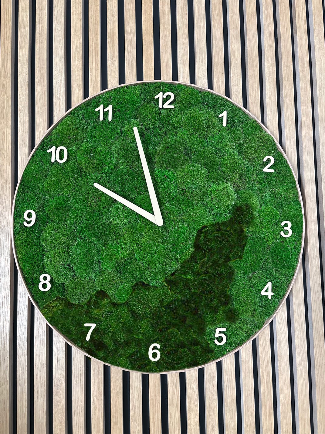 • Die Moosuhr kann mit anderen Moosprodukten aus unserem Angebot kombiniert werden. Wenn Sie Kreise in verschiedenen Größen und Moosarten kombinieren, entsteht eine interessante Komposition und ein angenehmer Raum zum Entspannen. Können Sie sich das nicht vorstellen? Unser Designer wird Sie gerne beraten.