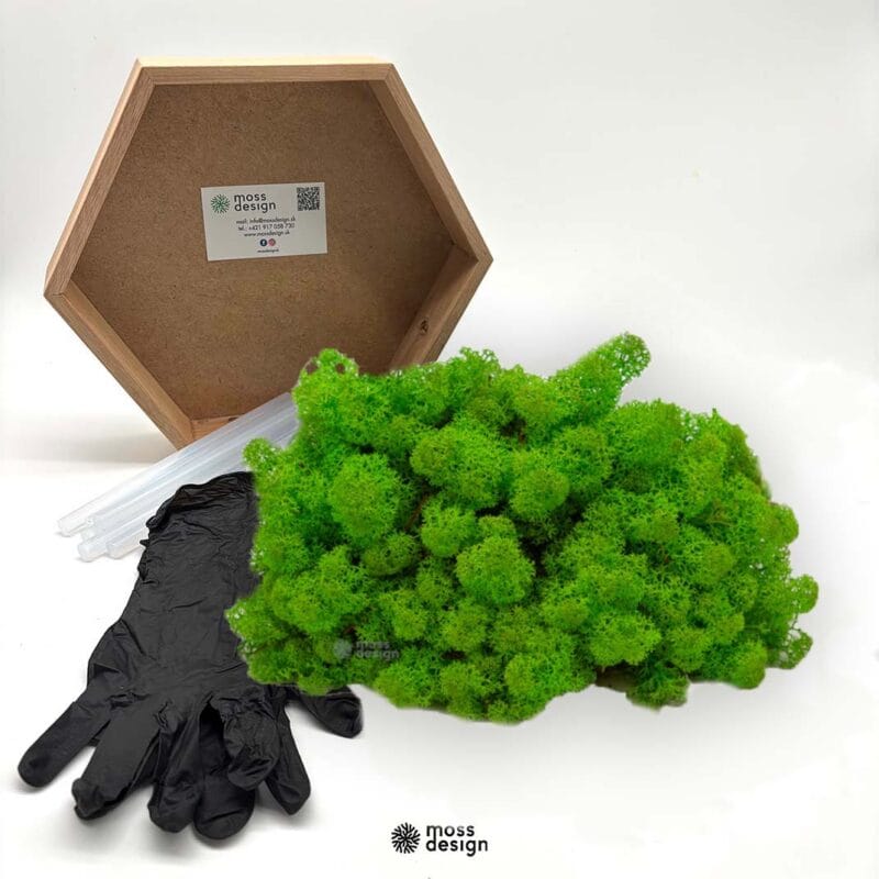 Stabilisierte Hügelflechten können mit einem speziellen Kleber für stabilisiertes Moos oder mit einer Heißklebepistole auf verschiedene feste Oberflächen wie Holz, Sololith, Kunststoff usw. geklebt werden.